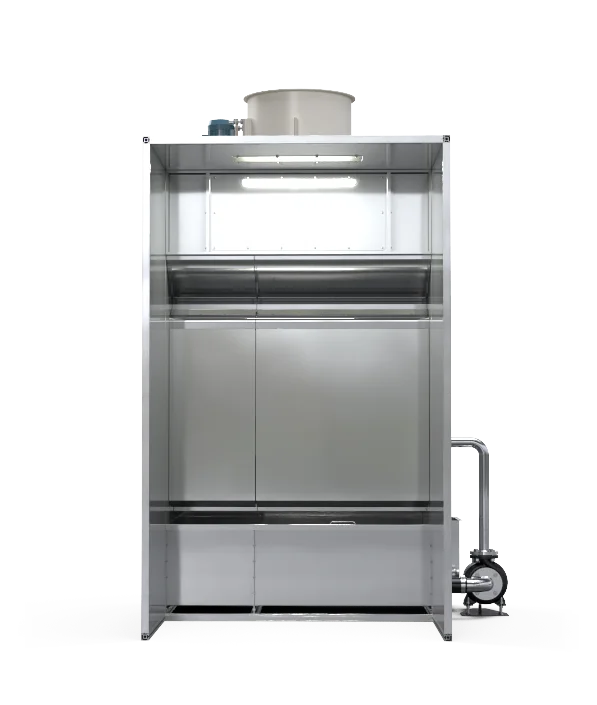 Kabina lakiernicza KWZ – kompaktowa, nowoczesna i gotowa do pracy Profesjonalna kabina do malowania farbami wodnymi i rozpuszczalnikowymi, wyposażona w ścianę wodną, silnik zgodny z ATEX oraz dotykowy panel sterujący z komunikacją ModBus. Wykonana z kwasoodpornej stali AISI304, z możliwością integracji z systemami SCADA i zdalną diagnostyką.