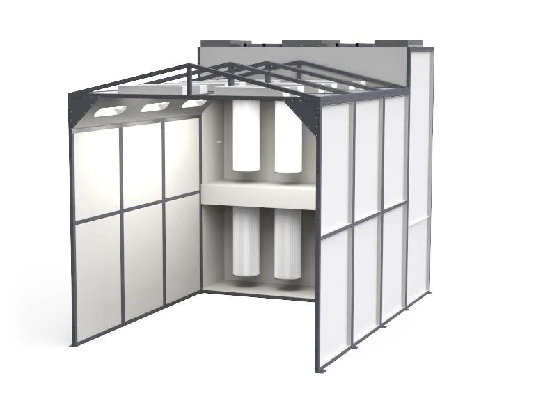 Kabina lakiernicza KPH – poziomy ciąg, dopasowanie do stanowiska, przemyślana konstrukcja Kabina tunelowa typu KPH z poziomym przepływem powietrza to dopracowane rozwiązanie do jednostanowiskowej lub dwustanowiskowej pracy w lakierniach proszkowych.