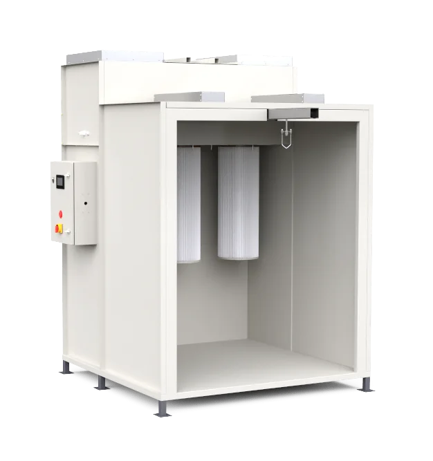 Kabiny wyposażone są w system filtracji z filtrami poliestrowymi o dużej paowierzchni filtracyjnej, co zapewnia skuteczne oczyszczanie powietrza z cząstek proszku. W kabinach montowany jest czujnik który kolejkuje filtry do czyszczenia w momencie kiedy się zatkają. System informuje też w sytuacji kiedy filtry już się wyeksploatowały. Kabiny posiadają elektroniczny system czyszczenia który posiada zakres regulacji częstotliwości czyszczenia, oraz czasu wystrzału.. Każdy z filtrów czyszczony jest osobno, filtry czyścić można również manualnie za pomocą przycisków.