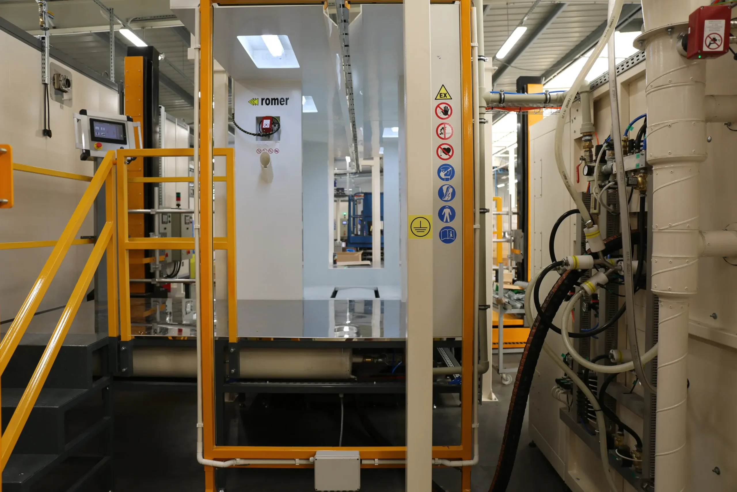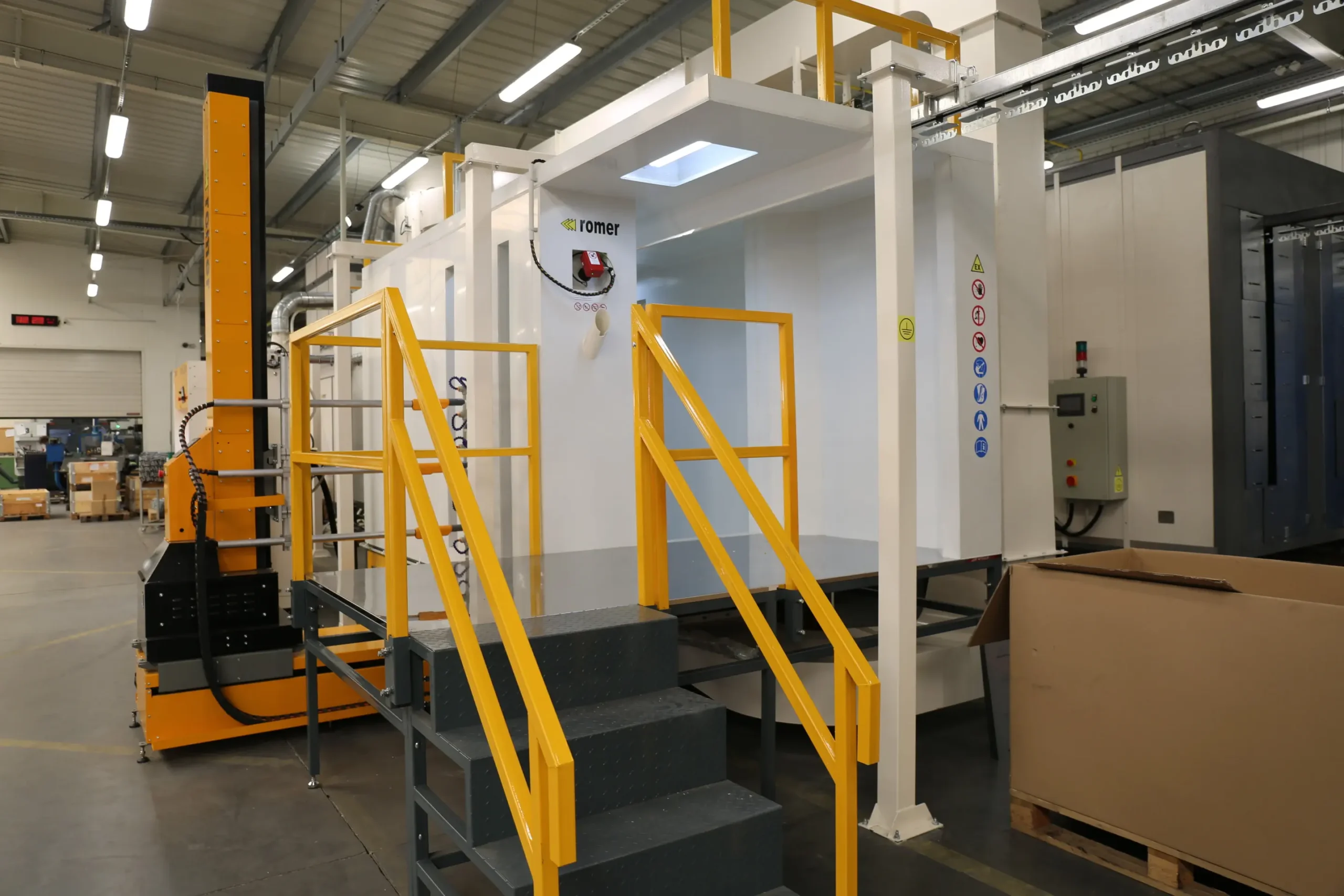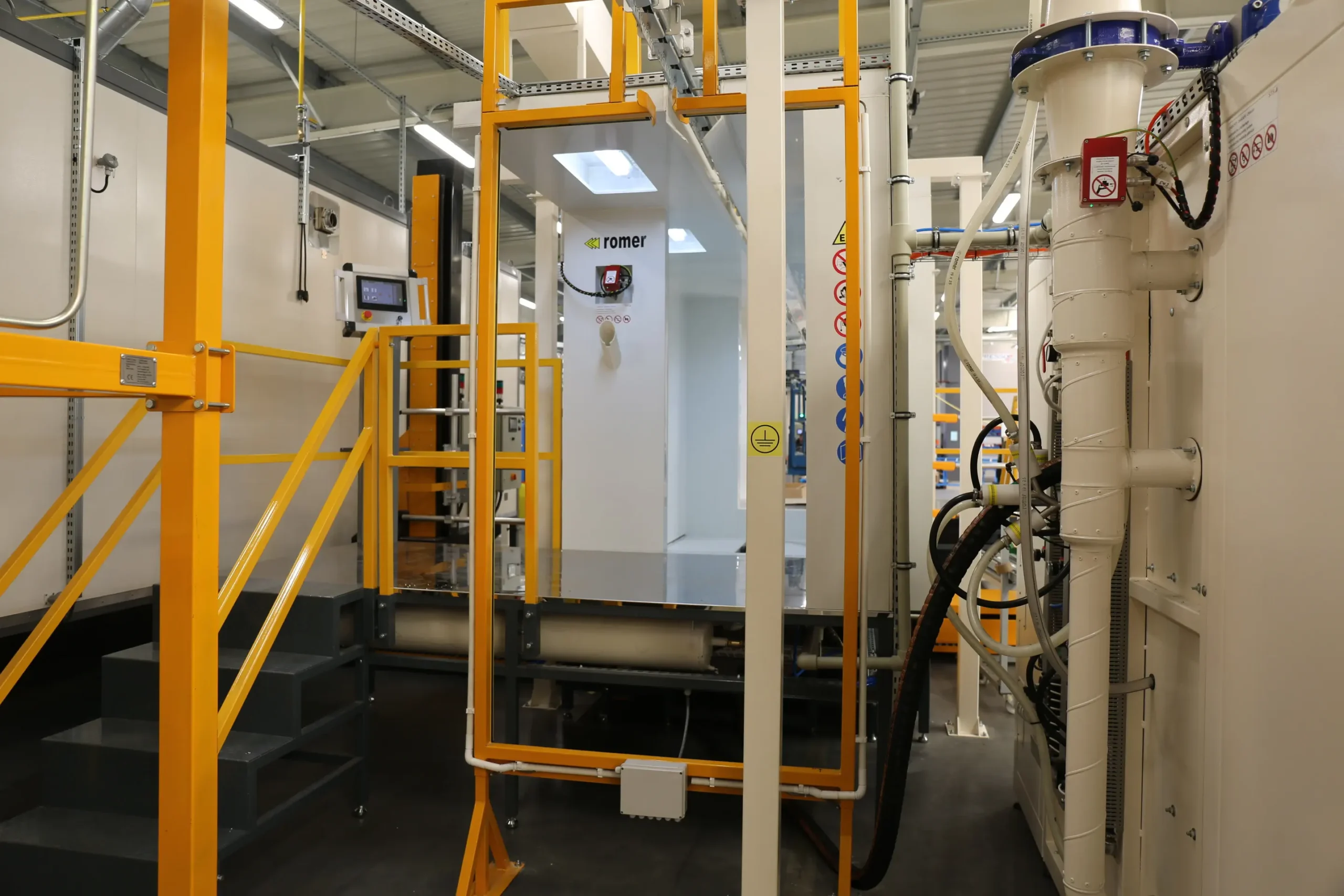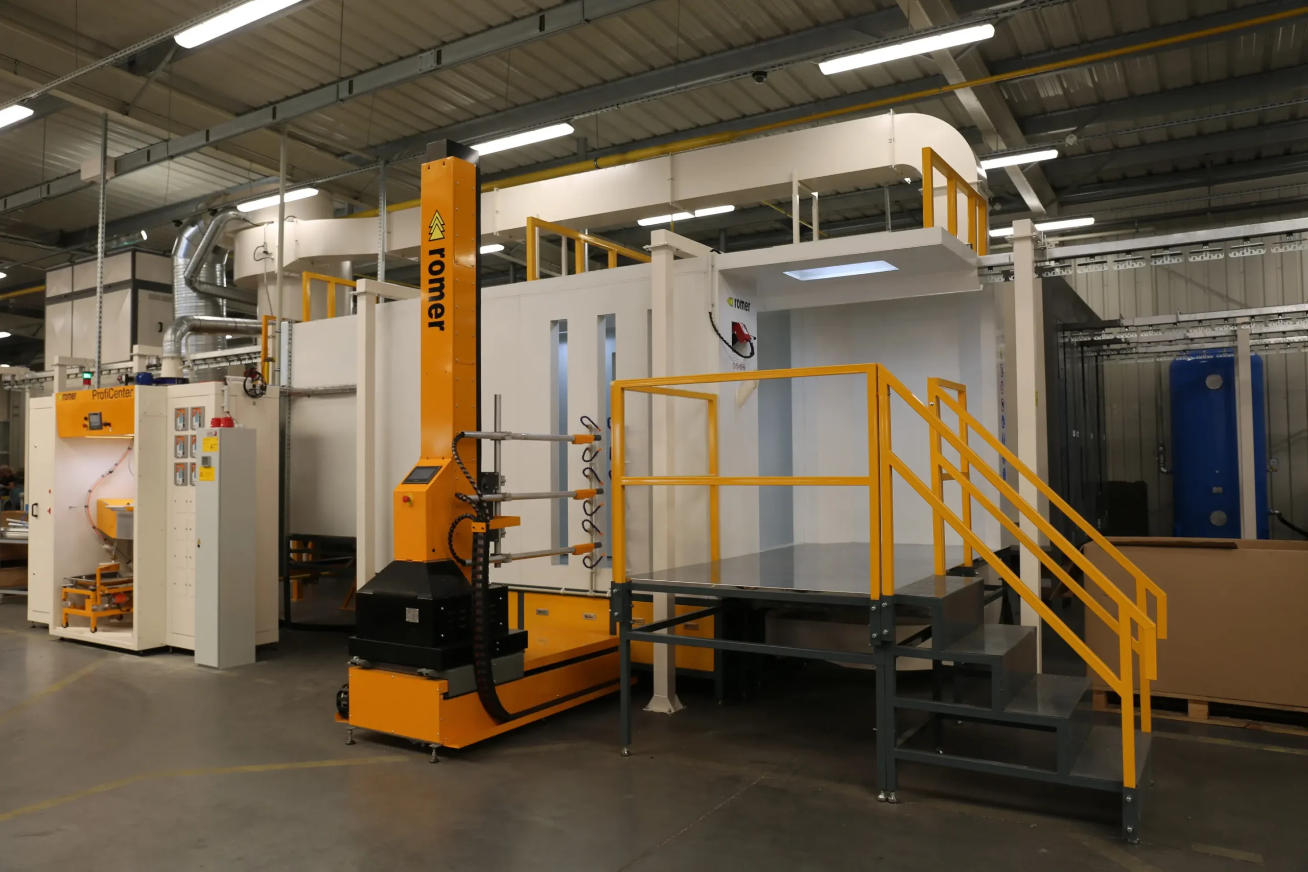 ROMER – Kompaktowa linia lakiernicza gotowa do pracy Zaprojektowana z myślą o maksymalnej wydajności i minimalnym zużyciu mediów, automatyczna lakiernia ROMER to kompleksowe rozwiązanie obejmujące myjnię tunelową, suszarkę, kabinę proszkową, piec polimeryzacyjny oraz przenośnik łańcuchowy monorail. Dzięki modułowej budowie i inteligentnemu sterowaniu zgodnemu z Industry 4.0, system zapewnia pełną kontrolę nad procesem, oszczędność energii i wysoką jakość powłok nawet w wymagającej produkcji seryjnej.