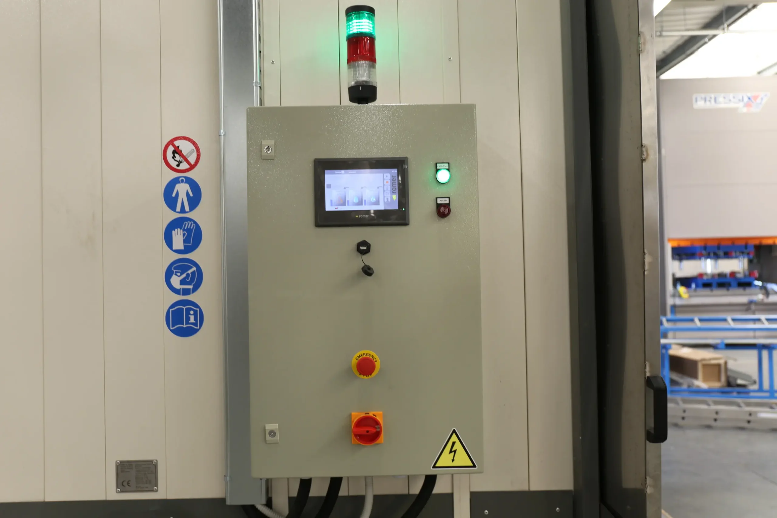 Cała linia komunikowana jest poprzez centralną jednostkę zgodną z Industry 4.0. System pozwala na monitorowanie parametrów pracy, diagnostykę i optymalizację zużycia mediów. Obsługa odbywa się z jednego miejsca – intuicyjnego panelu dotykowego z możliwością integracji ze SCADA.