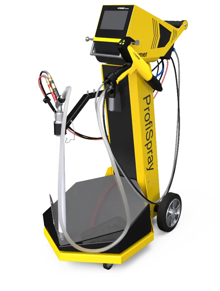 Każdy pistolet ProfiSpray posiada wbudowany moduł HV, który generuje napięcie elektrostatyczne bez potrzeby stosowania zewnętrznych generatorów. To upraszcza instalację i zwiększa niezawodność systemu.