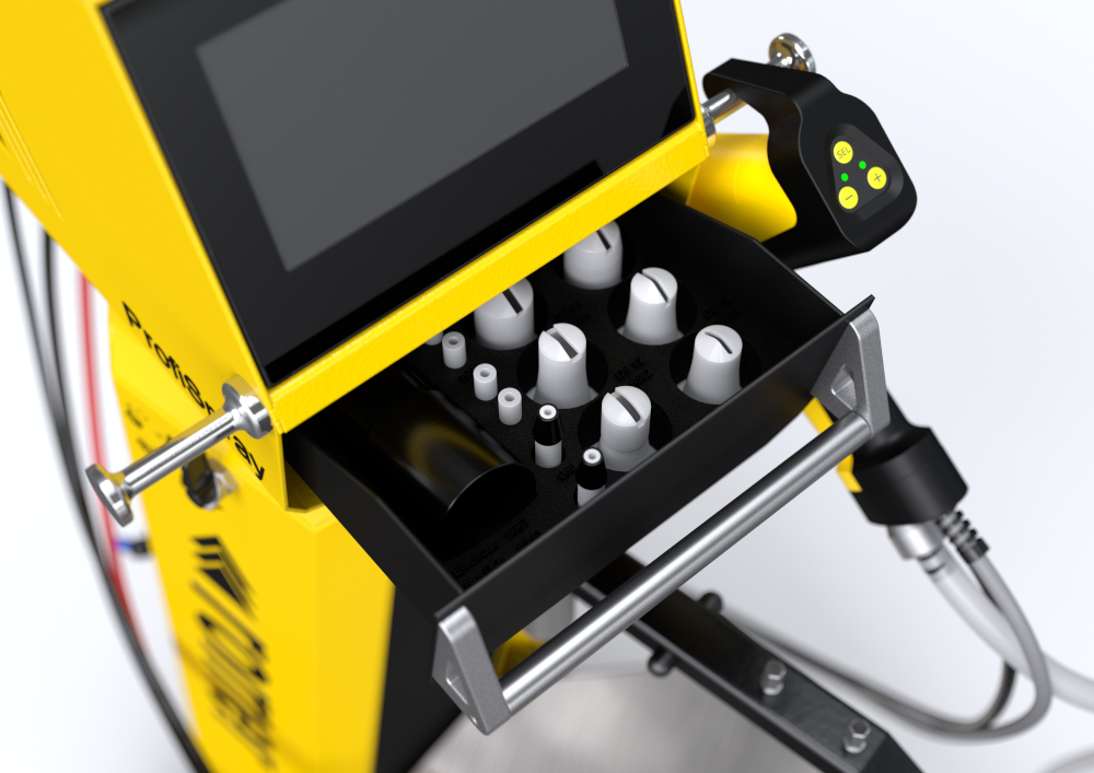Pistolet ProfiGun został zaprojektowany tak, aby rurka proszkowa – od szybkozłącza aż po samą dyszę – była wykonana z jednego elementu. Brak łączeń i kolanek eliminuje ryzyko rozszczelnienia, poprawiając niezawodność i ułatwiając konserwację.