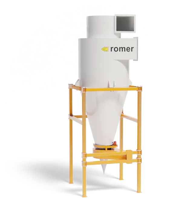 Separator cyklonowy firmy Romer został zaprojektowany z myślą o minimalizacji spadków ciśnienia i oszczędności miejsca dzięki zredukowanej wysokości.