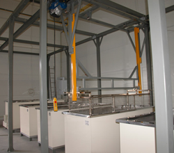 Zautomatyzowane systemy wannowe z wyciągarkami i myjkami ultradźwiękowymi, przeznaczone do wieloetapowego przygotowania powierzchni — od odtłuszczania po stripping i chromianowanie. Wykonane ze stali nierdzewnej lub polipropylenu, oferują wysoką jakość obróbki oraz możliwość rozbudowy o systemy filtracji i grzania.